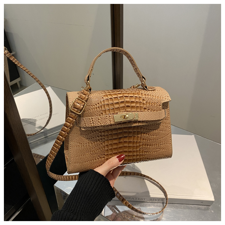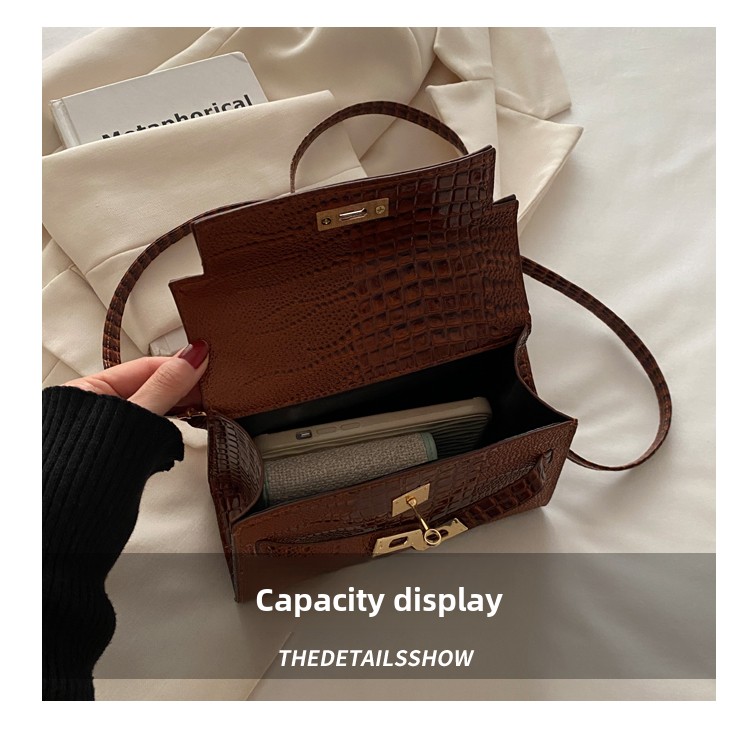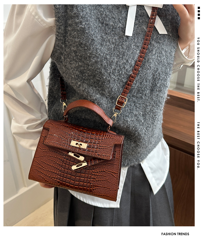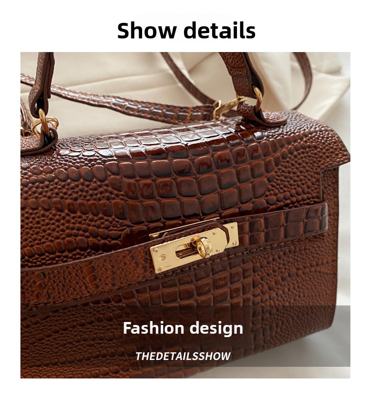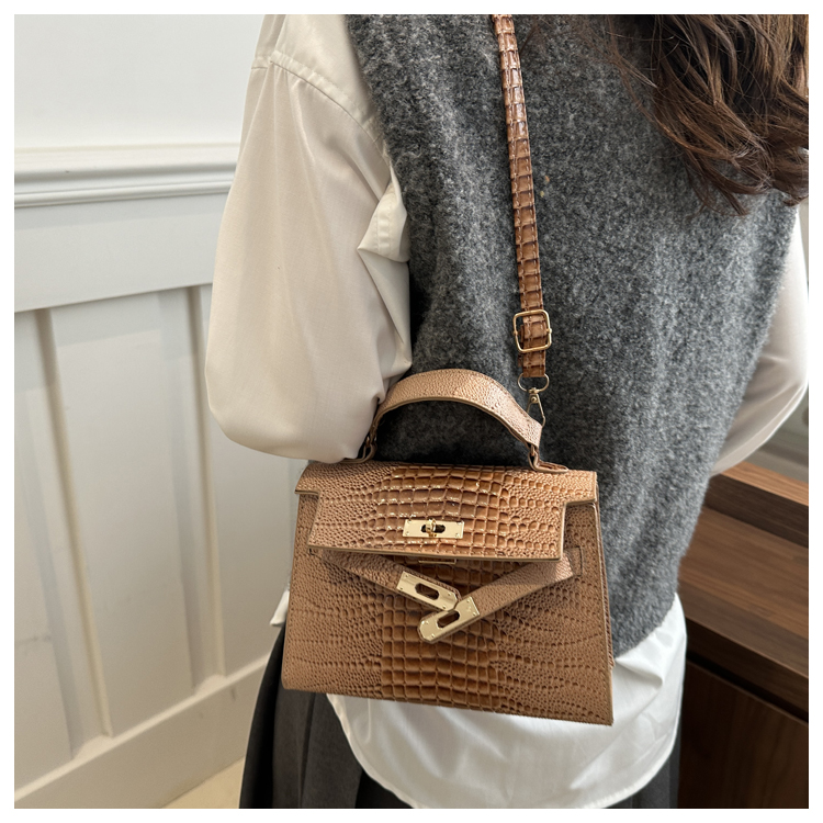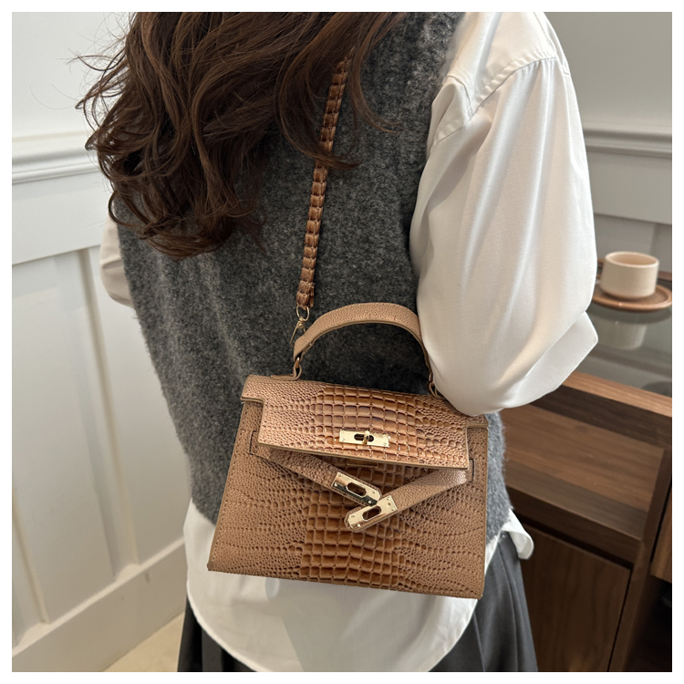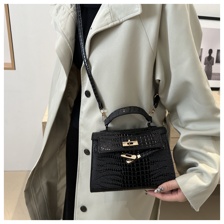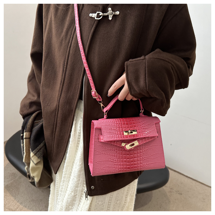 Small Fashionable Crocodile-Style Leather Handbag